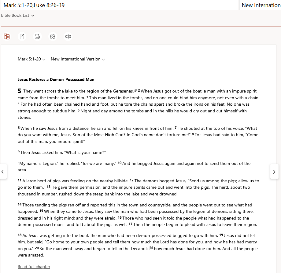 “And they come to Jesus, and see him that was possessed with the devil, and had the legion, sitting, and clothed, and in his right mind: and they were afraid.”